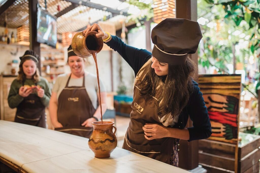 Orijinal Maya tarifini takip ederek bir parça macunu sıcak suyla karıştırmamız, ardından yüksekçe bir mesafeden kaptan kaba defalarca aktararak iyice köpürtmemiz gerekiyor. Makbul olan bol, yumuşak ve yoğun köpüklü bir içecek elde etmek. Ardından içine Amerika kıtasına özgü yakıcı bir tat olan çili biberi eklenecek. Şimdi afiyetle içebiliriz.