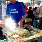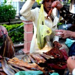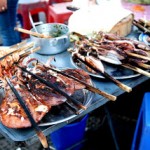Yine Phnom Penh’de sokaklarda geziyorum. Kaldırımda yanyana pişirmeye durmuş teyzeler. Biri yumurta haşlamış, ki haşlanmış yumurta buraların en sevilen yiyeceklerinden. Biri krep gibi birşey yapıyor. Bir başka tezgahta kızarmış kuş! Hangi kuş diye sormayın, bilmiyorum. Biraz daha ilerleyince, koca koca ızgara kalamarlar. Ama öyle bizim alışkın olduğumuz gibi halka halka değil buradaki kalamarlar. Hayvanı olduğu gibi ortadan ikiye ayırıp şişe geçirmişler. Hafif kızartıp tezgaha koymuşlar. Yemek istediğinizde hızlıca iki kere mangalda döndürüp ısıtıyor, öyle veriyorlar.